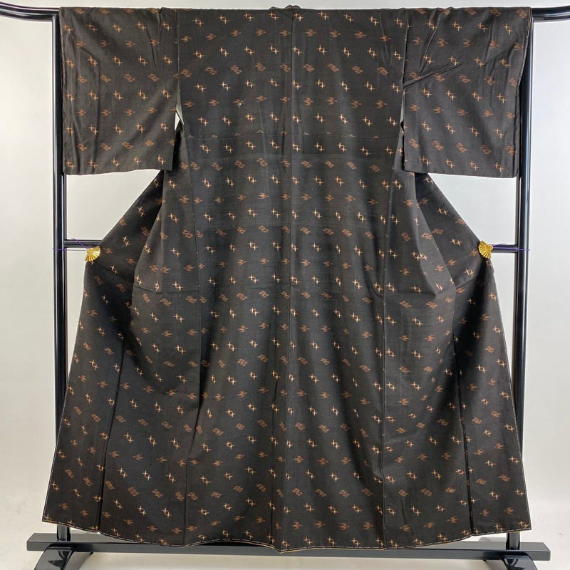 【紬】 茶系 焦茶色 名品 B 約150cm~約159cm 裄丈65cm (M)size 袖丈49cm 9990-29990 二万以下