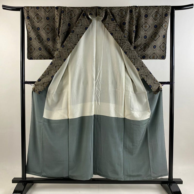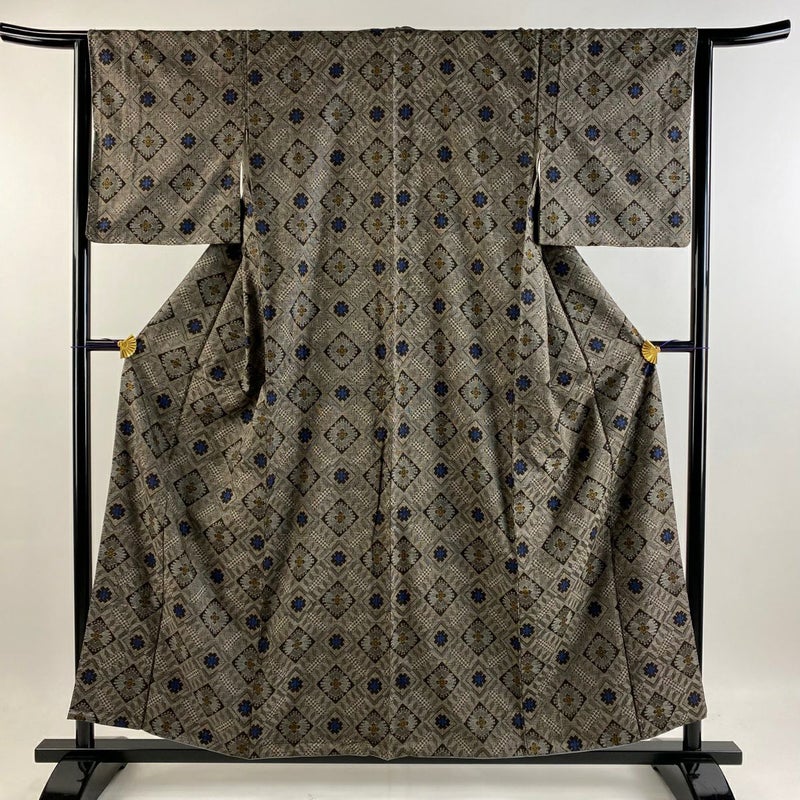 【着物ランク】名品 【素材】正絹 【身丈】約157cm 【裄丈】約64.5cm 【袖丈】約47cm 【袖幅】約33cm 【前幅】約24.5cm 【後幅】約31cm 【サイズ】M 【着物仕立て】袷 【着用時期】10~5月 【状態ランク】ランクB 【着物着用シーン】気軽なパーティー、観劇、食事会、正月、気軽なお茶会、街着