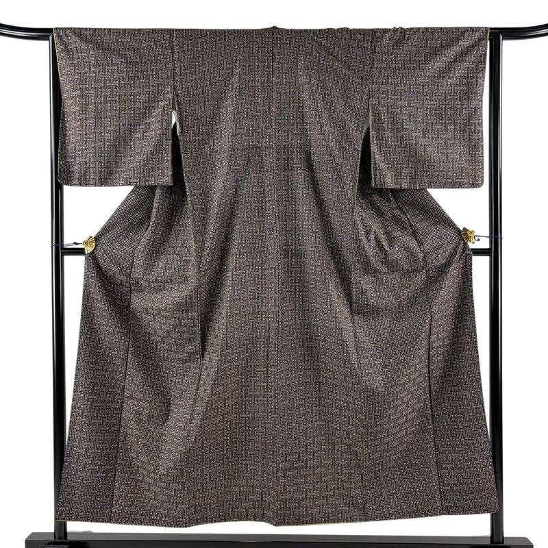 普段着やおしゃれ着として人気の紬でございます。 元々は日常着として着用していたので、その土地の風土に合った様々な種類がある素敵な一品です。 ※身丈・裄丈の縫込みの長さは測っておりません。 右後袖にシワ、後身頃の腰付近に糸のほつれがございます。 衿裏所々にシミ、胴裏所々に薄いシミがございます。 リユース品としては良い状態で、まだまだご活用頂けると思われます。 ※なお、厳しく商品の状態確認を行っておりますが、記載の汚れ以外にも見落とし箇所がある可能性がある旨ご了承いただけますと幸いです。 沢山の商品の中からご覧いただき誠にありがとうございます。