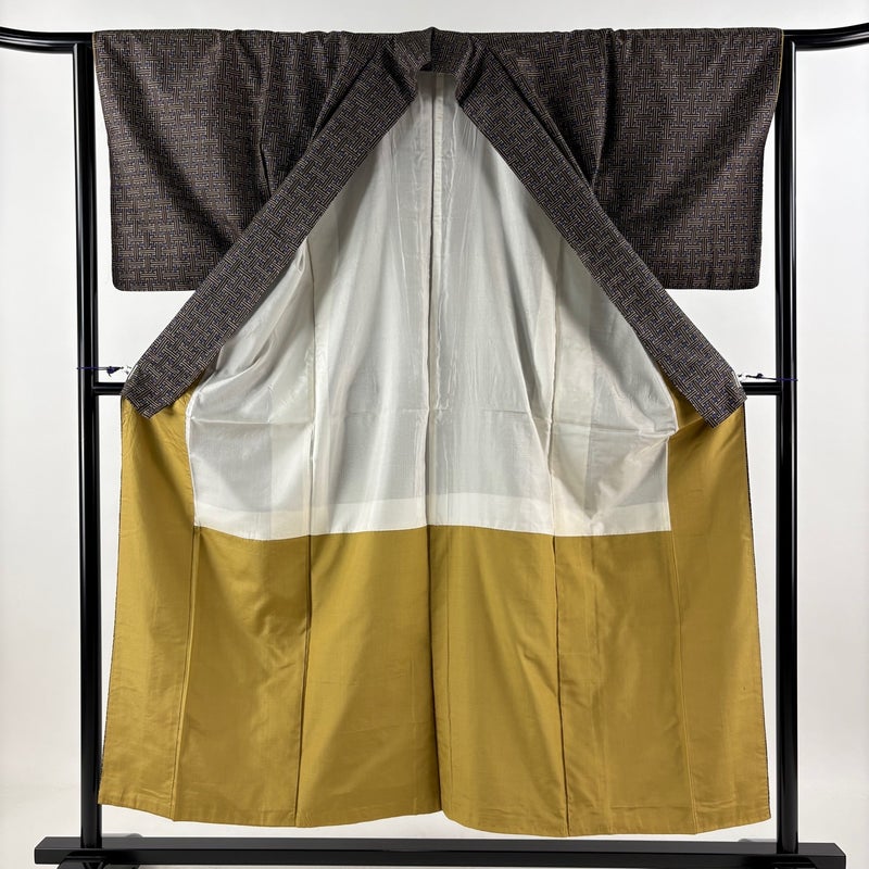 【紬】 茶系 焦茶色 名品 B 約150cm~約159cm 裄丈63cm-64cm (S)size 袖丈49cm 9990-29990 二万以下