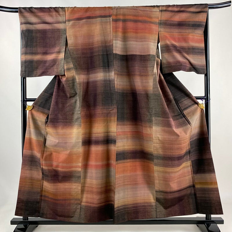 普段着やおしゃれ着として人気の紬でございます。 元々は日常着として着用していたので、その土地の風土に合った様々な種類がある素敵な一品です。 ※身丈・裄丈の縫込みの長さは測っておりません。 リユース品としては目立った染み傷なく、大変状態の良いお品でございます。 沢山の商品の中からご覧いただき誠にありがとうございます。