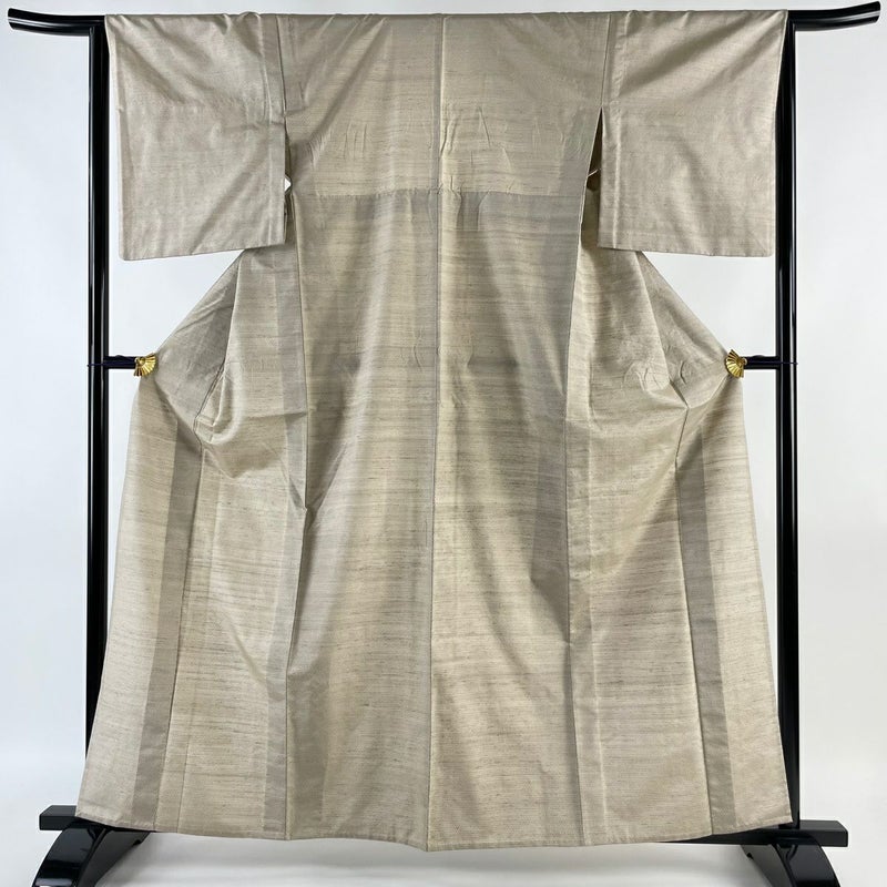 【着物ランク】秀品 【素材】正絹 【身丈】約161cm 【裄丈】約64cm 【袖丈】約49cm 【袖幅】約33cm 【前幅】約24cm 【後幅】約28.5cm 【サイズ】M 【着物仕立て】単衣 【着用時期】6/9月 【状態ランク】ランクA 【着物着用シーン】気軽なパーティー、観劇、食事会、正月、気軽なお茶会、街着