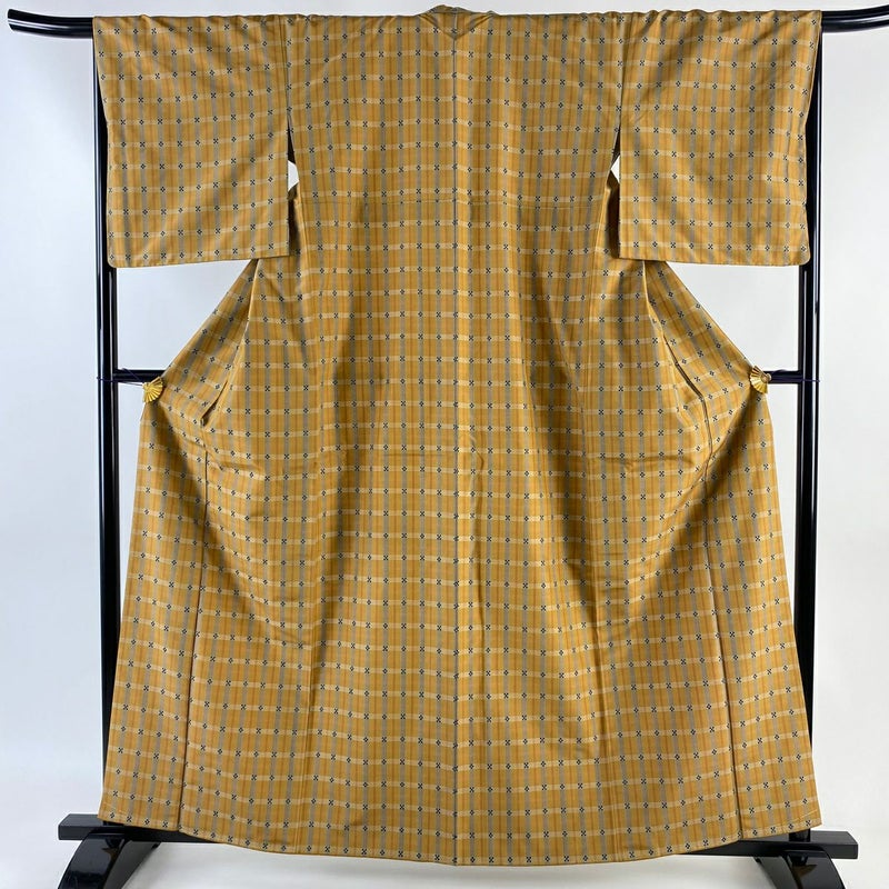【紬】 黄色系 山吹茶色 逸品 A 約160cm~約169cm 裄丈67cm-68cm (M)size 袖丈49cm 30000- 美品 五万以上