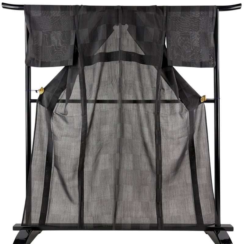 【着物ランク】秀品 【素材】正絹 【身丈】約157.5cm 【裄丈】約67.5cm 【袖丈】約45.5cm 【袖幅】約34.5cm 【前幅】約25cm 【後幅】約32.5cm 【サイズ】L 【着物仕立て】薄物 【着用時期】7~8月 【状態ランク】ランクB 【着物着用シーン】気軽なパーティー、観劇、食事会、正月、気軽なお茶会、街着
