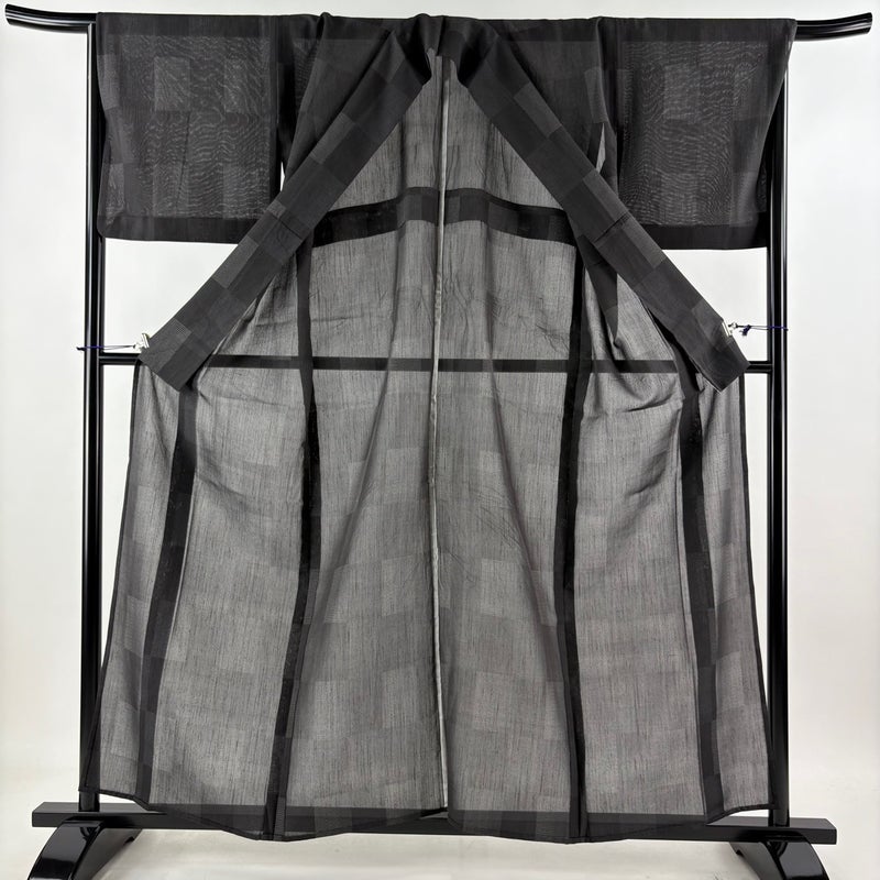 【紬】 灰色系 黒灰 秀品 B 約150cm~約159cm 裄丈67cm-68cm (L)size 袖丈46cm以下 9990-29990 二万以下