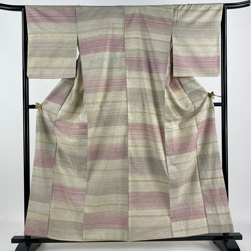 【紬】 白系 ベージュ 名品 C 約150cm~約159cm 裄丈63cm-64cm M 袖丈49cm 9990-29990 五万以下