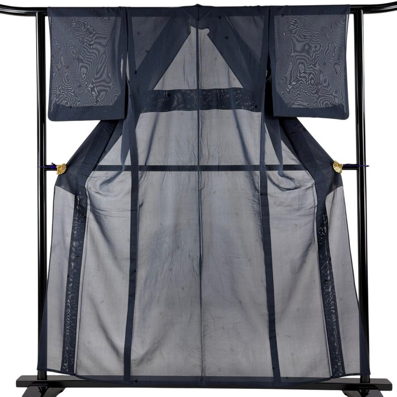 【着物ランク】秀品 【素材】正絹 【身丈】約158cm 【裄丈】約62.5cm 【袖丈】約49.5cm 【袖幅】約32.5cm 【前幅】約24cm 【後幅】約29.5cm 【サイズ】S 【着物仕立て】薄物 【着用時期】7~8月 【状態ランク】ランクB 【着物着用シーン】気軽なパーティー、観劇、食事会、正月、気軽なお茶会、街着