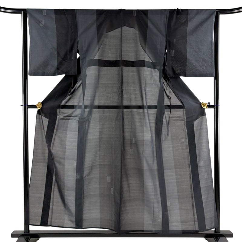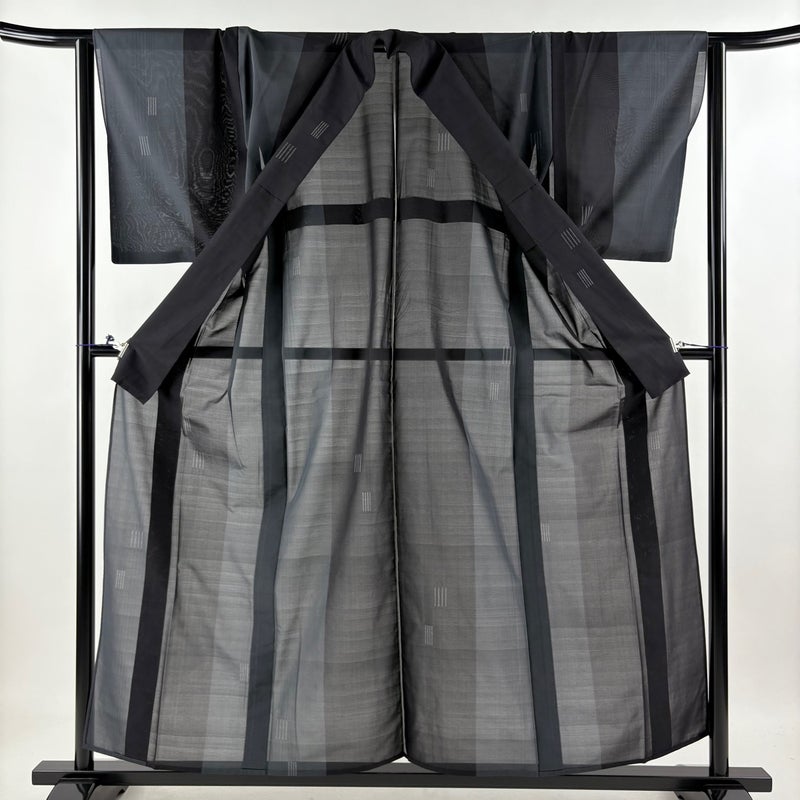 【紬】 黒系 黒 秀品 B 約150cm~約159cm 裄丈63cm-64cm (M)size 袖丈48cm 9990-29990 二万以下
