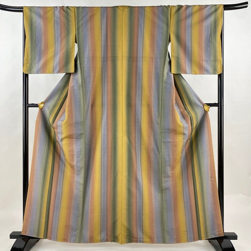 【紬】 黄色系 黄土色 名品 A 約160cm~約169cm 裄丈67cm-68cm M 袖丈49cm 9990-29990 美品 二万以下