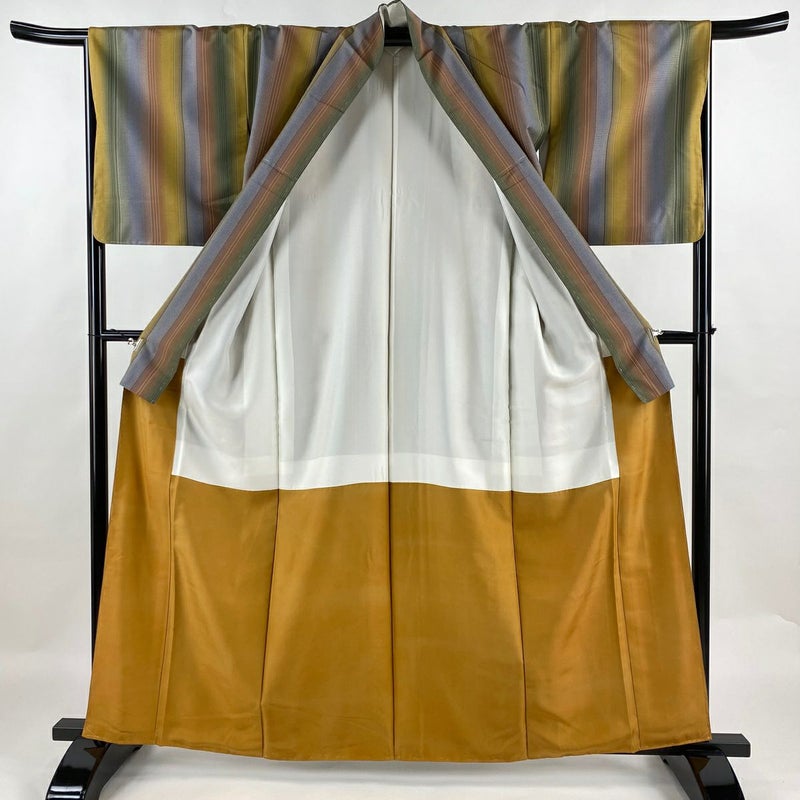 【着物ランク】名品 【素材】正絹 【身丈】約162cm 【裄丈】約67cm 【袖丈】約49cm 【袖幅】約33.5cm 【前幅】約24.5cm 【後幅】約29.5cm 【サイズ】M 【着物仕立て】袷 【着用時期】10~5月 【状態ランク】ランクA 【着物着用シーン】気軽なパーティー、観劇、食事会、正月、気軽なお茶会、街着