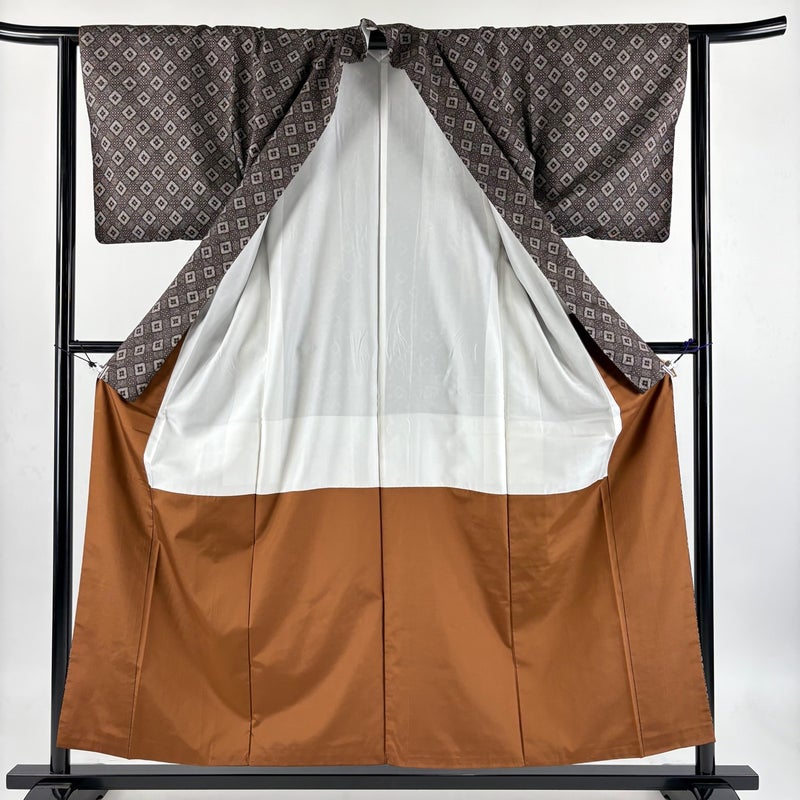 【紬】 茶系 焦茶色 名品 A 約150cm~約159cm 裄丈62cm以下 (S)size 袖丈46cm以下 9990-29990 美品 二万以下