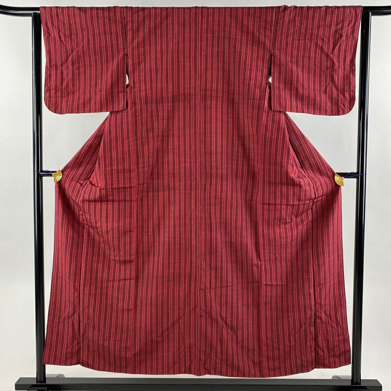 【紬】 赤系 えんじ色 優品 B 約150cm~約159cm 裄丈63cm-64cm S 袖丈46cm以下 -3980 二万以下