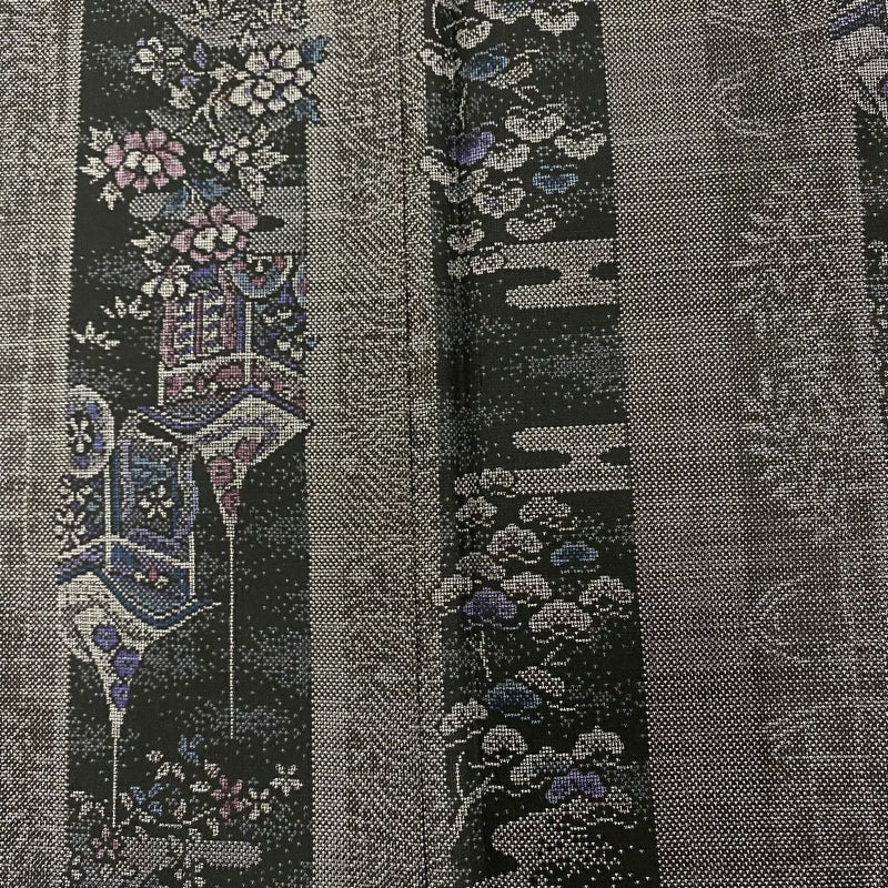 【着物ランク】名品 【素材】正絹 【身丈】約168cm 【裄丈】約68cm 【袖丈】約48.5cm 【袖幅】約34cm 【前幅】約25cm 【後幅】約32cm 【サイズ】L 【着物仕立て】袷 【着用時期】10~5月 【状態ランク】ランクB 【着物着用シーン】気軽なパーティー、観劇、食事会、正月、気軽なお茶会、街着