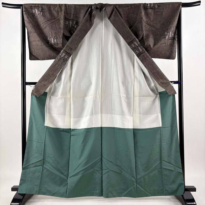 【紬】 茶系 焦茶色 秀品 B 約160cm~約169cm 裄丈66cm (M)size 袖丈48cm 4000-7980 二万以下