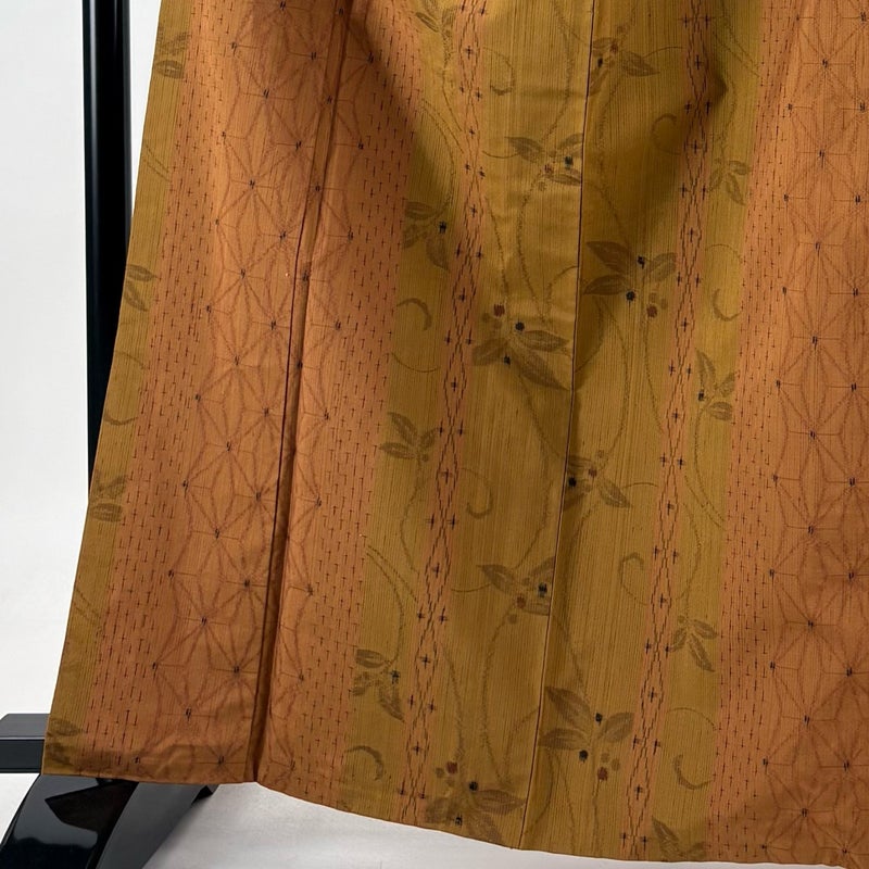 【着物ランク】秀品 【素材】正絹 【身丈】約164.5cm 【裄丈】約65cm 【袖丈】約49cm 【袖幅】約33cm 【前幅】約23.5cm 【後幅】約28cm 【サイズ】M 【着物仕立て】袷 【着用時期】10~5月 【状態ランク】ランクA 【着物着用シーン】気軽なパーティー、観劇、食事会、正月、気軽なお茶会、街着