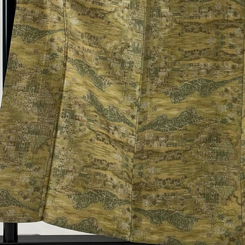 【紬】 茶系 茶緑色 優品 B 約150cm~約159cm 裄丈63cm-64cm (M)size 袖丈49cm 4000-7980 二万以下