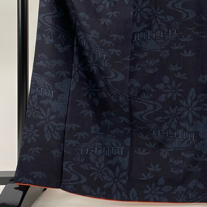 【着物ランク】秀品 【素材】正絹 【身丈】約166cm 【裄丈】約68cm 【袖丈】約53cm 【袖幅】約36cm 【前幅】約23.5cm 【後幅】約30cm 【サイズ】L 【着物仕立て】袷 【着用時期】10~5月 【状態ランク】ランクA 【着物着用シーン】気軽なパーティー、観劇、食事会、正月、気軽なお茶会、街着