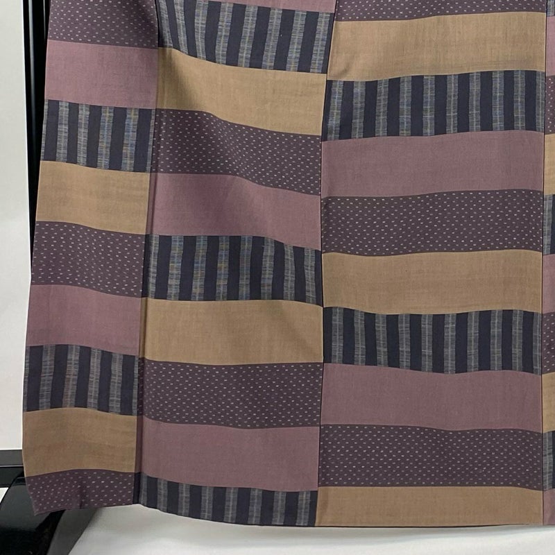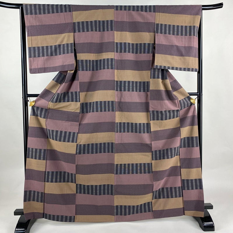 【着物ランク】逸品 【素材】綿 【身丈】約167cm 【裄丈】約64.5cm 【袖丈】約52.5cm 【袖幅】約35cm 【前幅】約25cm 【後幅】約29.5cm 【サイズ】M 【着物仕立て】袷 【着用時期】10~5月 【状態ランク】ランクB 【着物着用シーン】気軽なパーティー、観劇、食事会、正月、気軽なお茶会、街着
