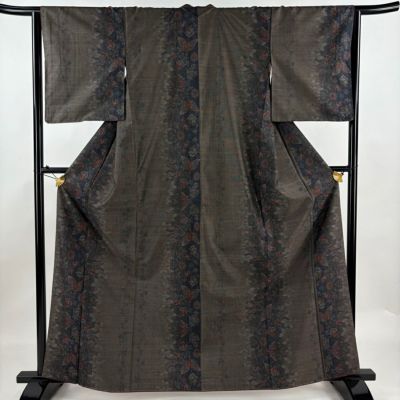 普段着やおしゃれ着として人気の紬でございます。 元々は日常着として着用していたので、その土地の風土に合った様々な種類がある素敵な一品です。 ※身丈・裄丈の縫込みの長さは測っておりません。 両袖口中に汚れ、両胸にシワ、後身頃の裾付近に擦れ、右胸に糸つれがございます。 胴裏所々に擦れがございます。 リユース品としては目立った染み傷なく、大変状態の良いお品でございます。 沢山の商品の中からご覧いただき誠にありがとうございます。