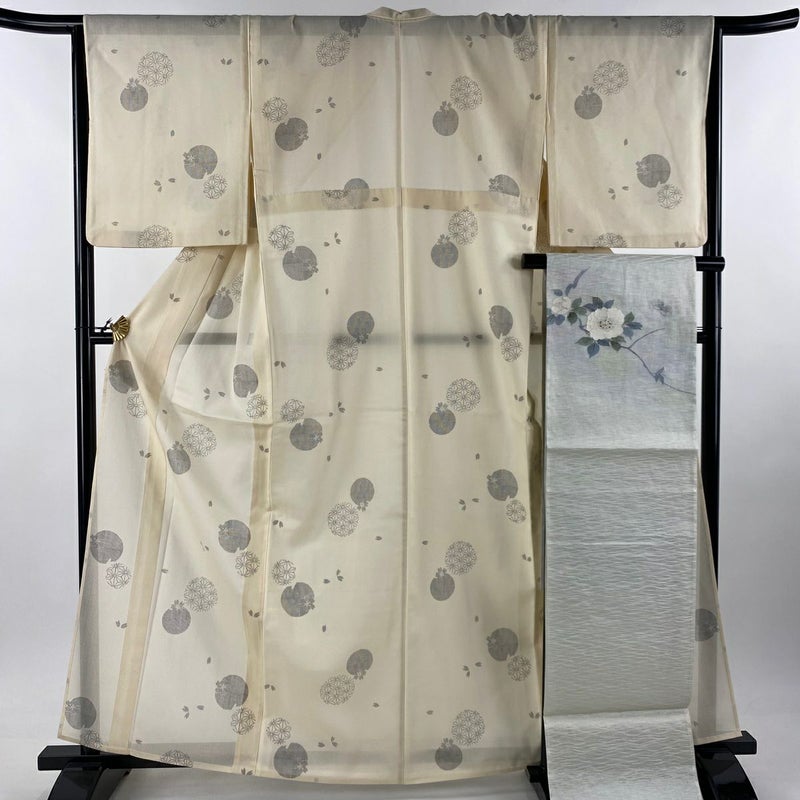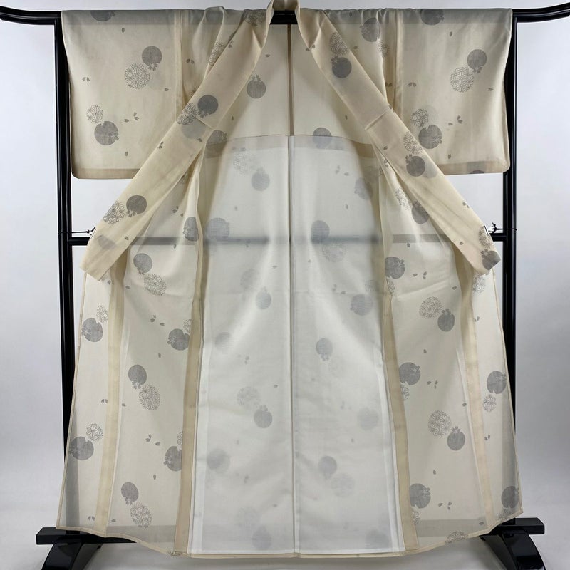 【紬】 白系 ベージュ 秀品 A 約160cm~約169cm 裄丈65cm (M)size 袖丈48cm 9990-29990 美品 五万以下