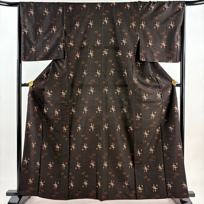 【紬】 茶系 焦茶色 名品 B 約160cm~約169cm 裄丈66cm (M)size 袖丈50cm-60cm 4000-7980 二万以下