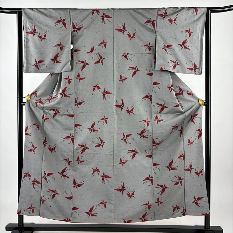 【紬】 灰色系 灰色 優品 A 約150cm~約159cm 裄丈63cm-64cm (S)size 袖丈49cm 4000-7980 美品 二万以下