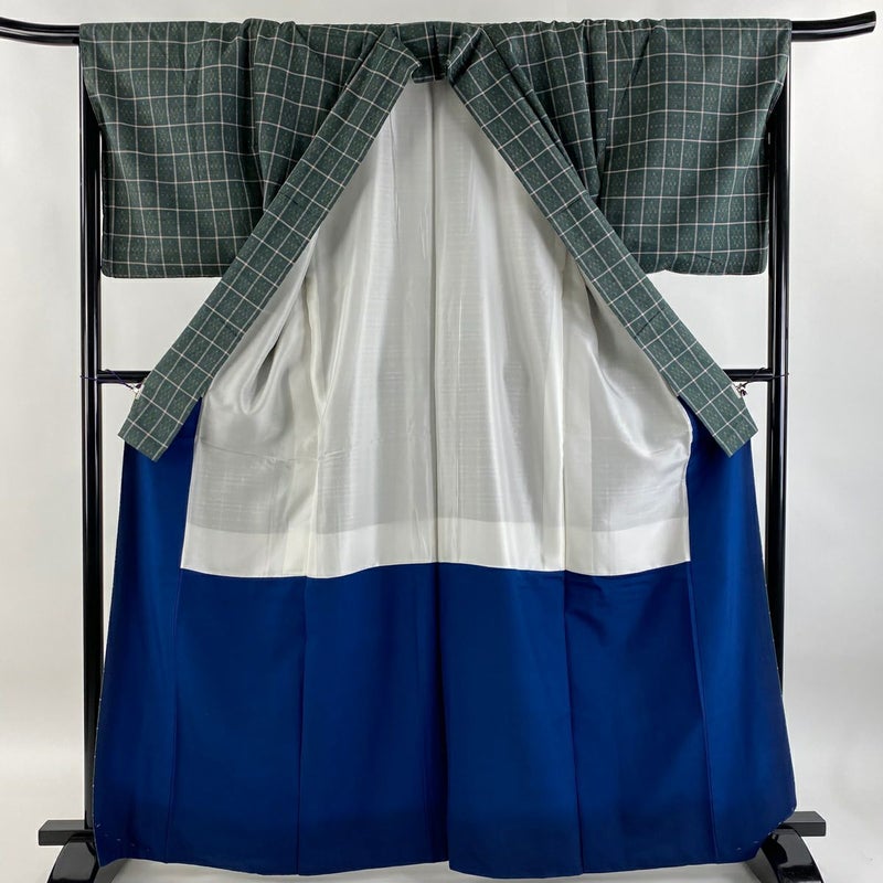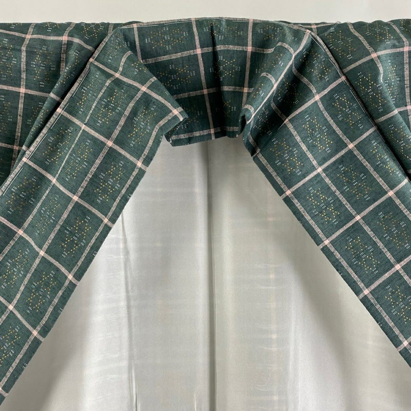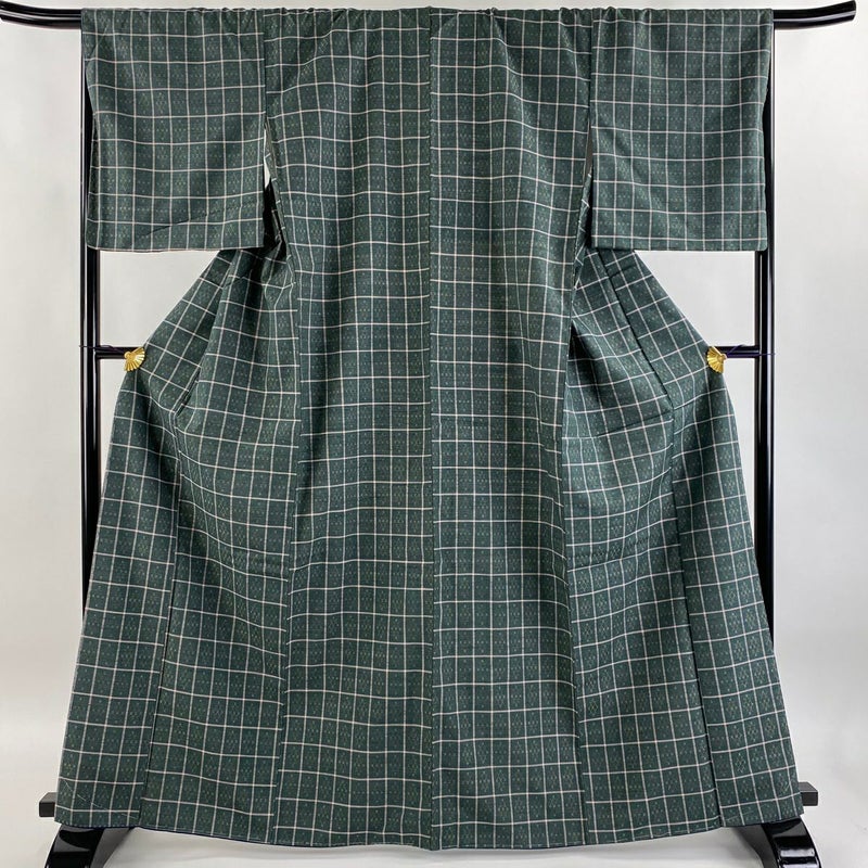 【紬】 緑系 緑 逸品 A 約160cm~約169cm 裄丈67cm-68cm (L)size 袖丈48cm 30000- 美品 五万以下