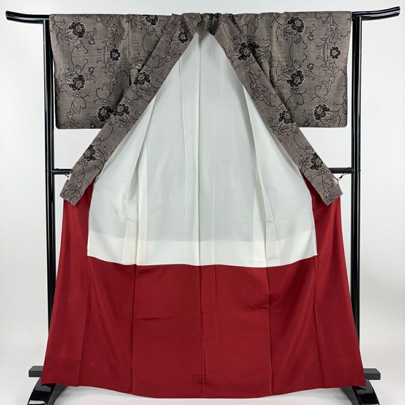 【着物ランク】秀品 【素材】正絹 【身丈】約166cm 【裄丈】約67cm 【袖丈】約49cm 【袖幅】約34cm 【前幅】約24cm 【後幅】約30.5cm 【サイズ】M 【着物仕立て】袷 【着用時期】10~5月 【状態ランク】ランクB 【着物着用シーン】気軽なパーティー、観劇、食事会、正月、気軽なお茶会、街着