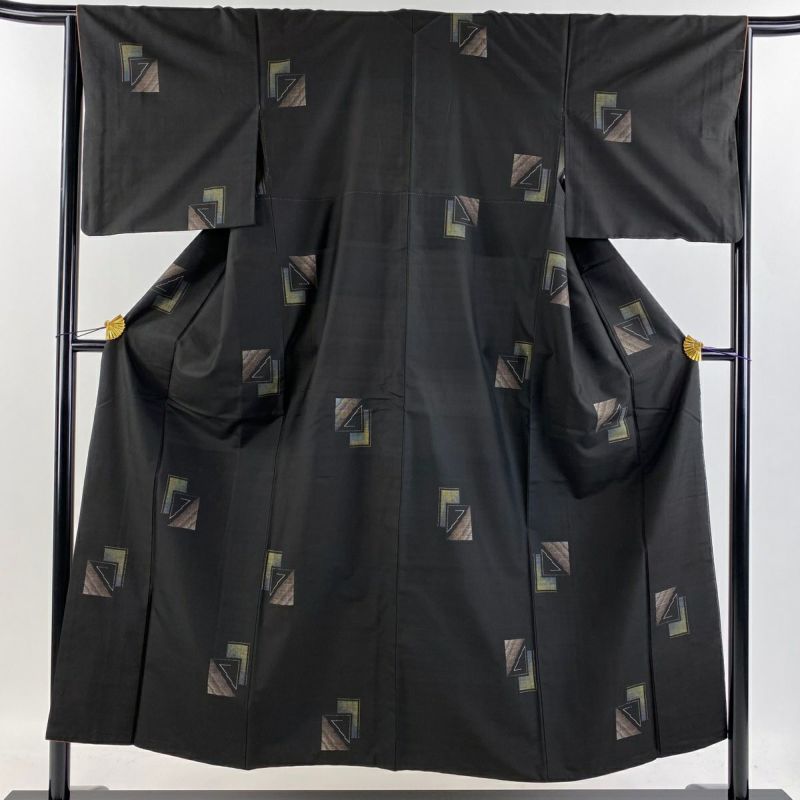 【紬】 黒系 墨色 名品 B 約150cm~約159cm 裄丈63cm-64cm (M)size 袖丈46cm以下 9990-29990 二万以下