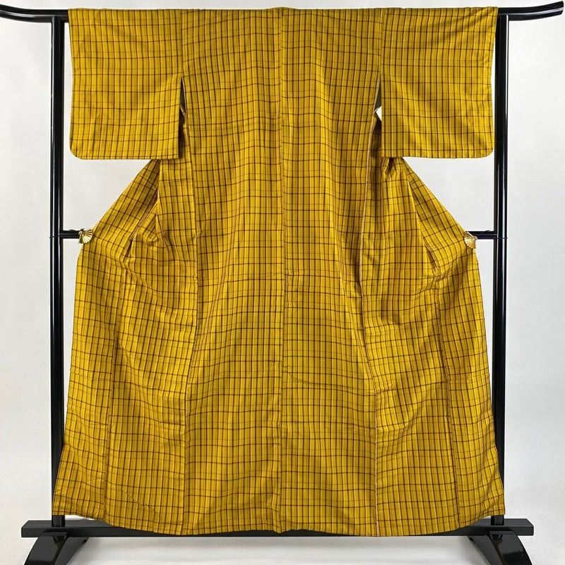 【紬】 黄色系 山吹色 逸品 A 約150cm~約159cm 裄丈62cm以下 (S)size 袖丈47cm 9990-29990 美品 二万以下