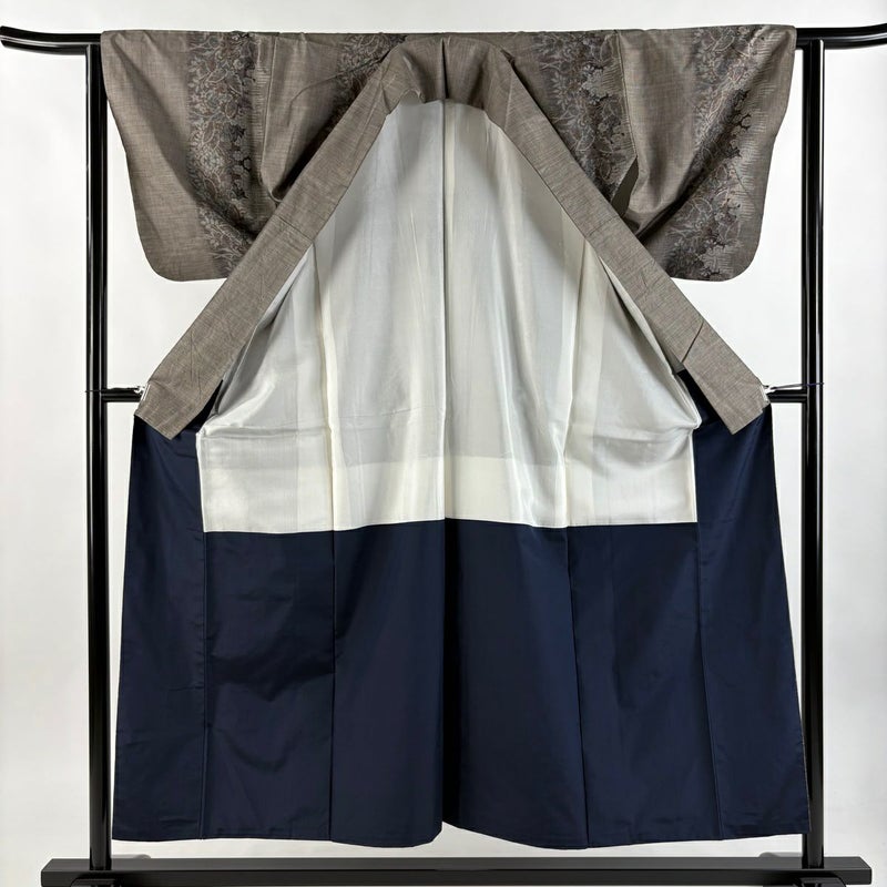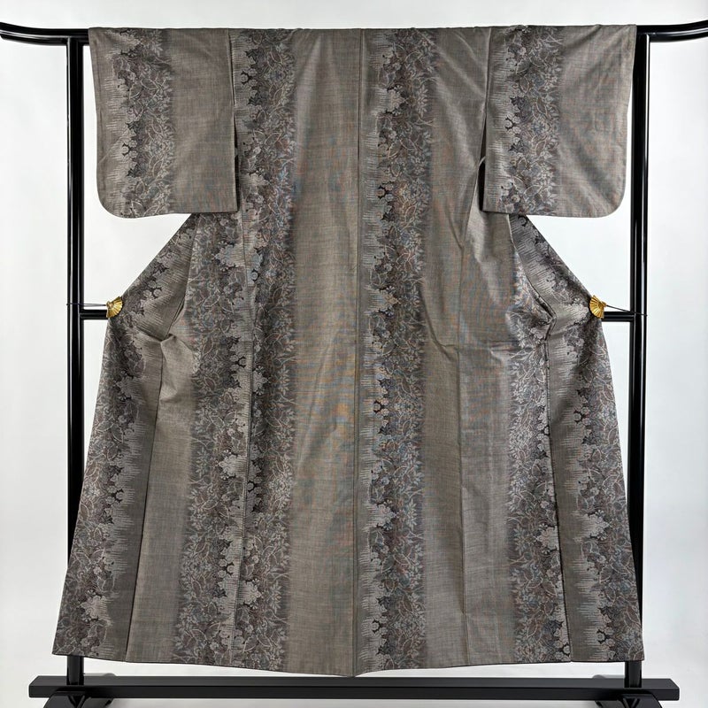 【紬】 灰色系 灰茶 秀品 C 約150cm~約159cm 裄丈63cm-64cm (S)size 袖丈47cm -3980 二万以下