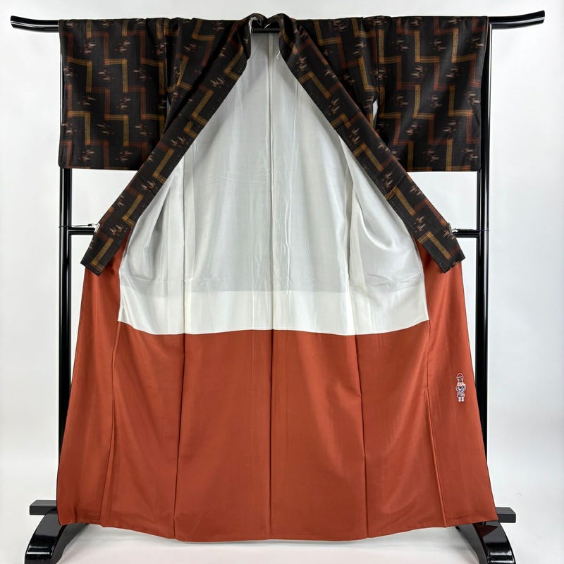 【紬】 茶系 焦茶色 名品 A 約160cm~約169cm 裄丈67cm-68cm (M)size 袖丈49cm 9990-29990 美品 二万以下