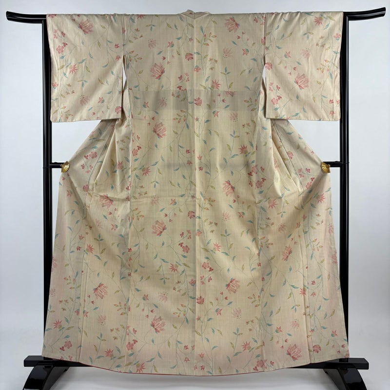 【紬】 白系 ベージュ 名品 A 約160cm~約169cm 裄丈65cm (M)size 袖丈49cm 9990-29990 美品 二万以下