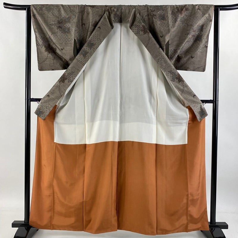 【紬】 灰色系 灰茶 秀品 B 約160cm~約169cm 裄丈63cm-64cm (M)size 袖丈47cm -3980 二万以下