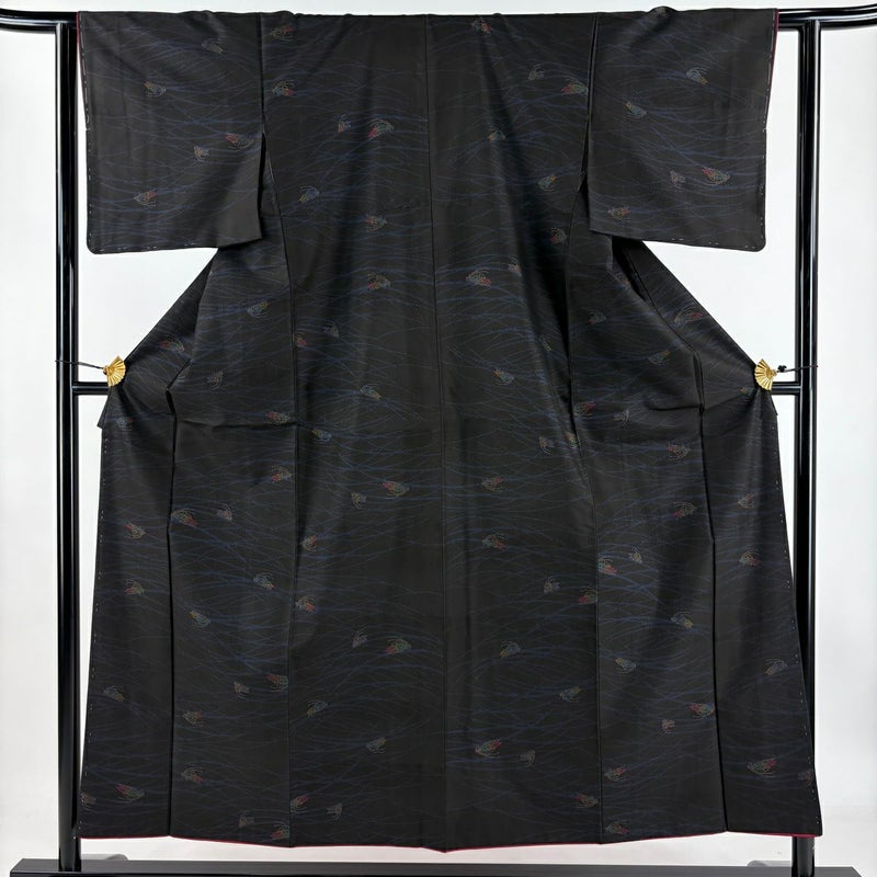 【紬】 黒系 墨色 秀品 A 約150cm~約159cm 裄丈62cm以下 (S)size 袖丈46cm以下 7990-9980 美品 二万以下
