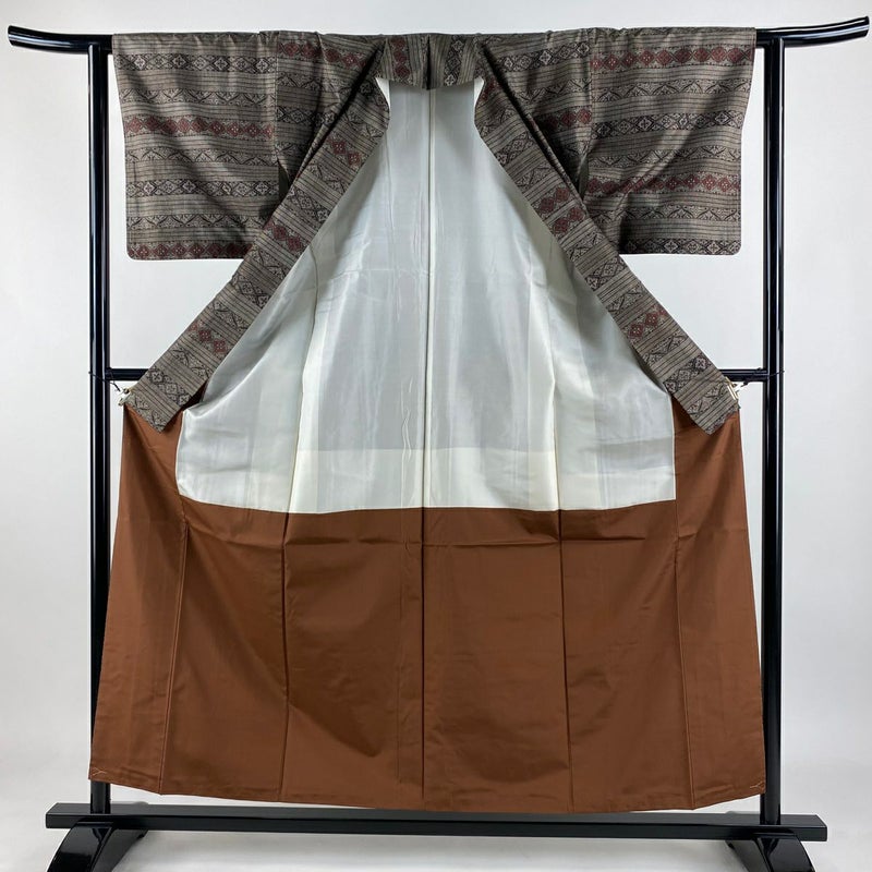 【紬】 茶系 焦茶色 秀品 B 約150cm~約159cm 裄丈62cm以下 (S)size 袖丈46cm以下 -3980 二万以下
