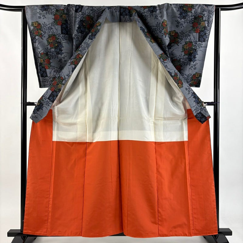 【着物ランク】優品 【素材】正絹 【身丈】約160cm 【裄丈】約64cm 【袖丈】約56cm 【袖幅】約33.5cm 【前幅】約23cm 【後幅】約29.5cm 【サイズ】M 【着物仕立て】袷 【着用時期】10~5月 【状態ランク】ランクA 【着物着用シーン】気軽なパーティー、観劇、食事会、正月、気軽なお茶会、街着
