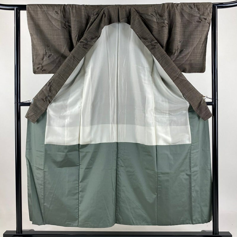 【紬】 茶系 焦茶色 秀品 B 約150cm~約159cm 裄丈62cm以下 (S)size 袖丈47cm -3980 二万以下