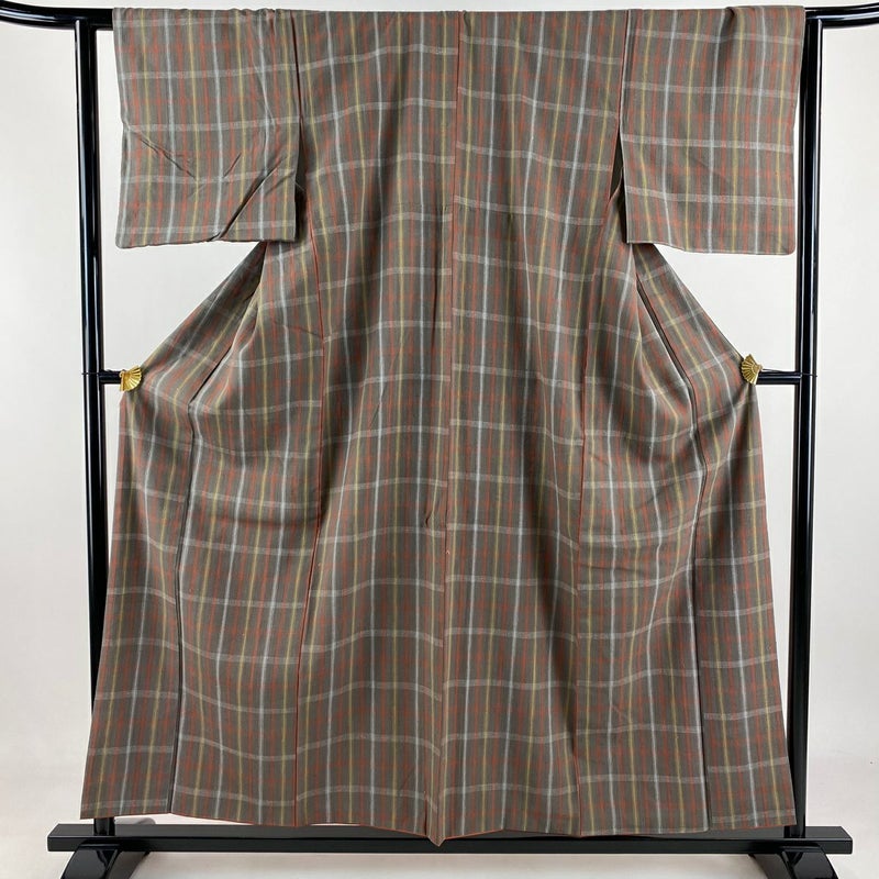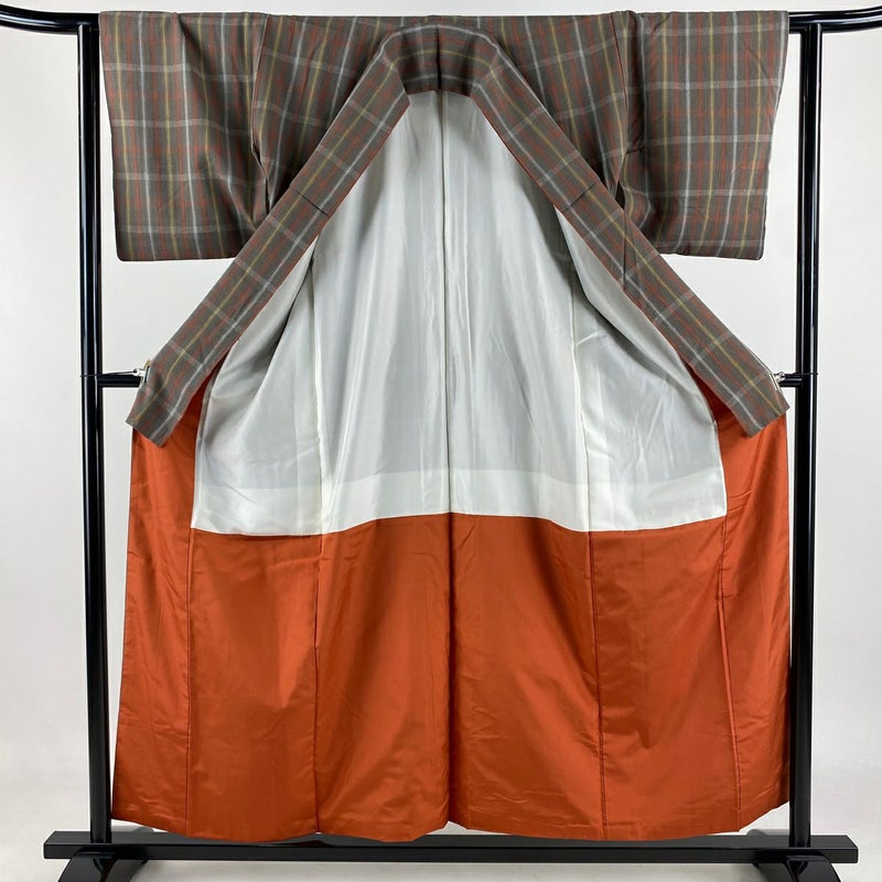 【紬】 灰色系 灰茶 名品 A 約150cm~約159cm 裄丈62cm以下 (S)size 袖丈46cm以下 4000-7980 美品 二万以下