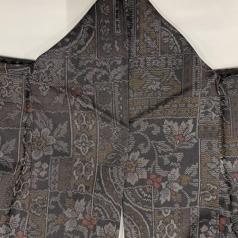 【着物ランク】秀品 【素材】正絹 【身丈】約157cm 【裄丈】約64cm 【袖丈】約48cm 【袖幅】約32.5cm 【前幅】約23.5cm 【後幅】約30.5cm 【サイズ】M 【着物仕立て】袷 【着用時期】10~5月 【状態ランク】ランクA 【着物着用シーン】気軽なパーティー、観劇、食事会、正月、気軽なお茶会、街着
