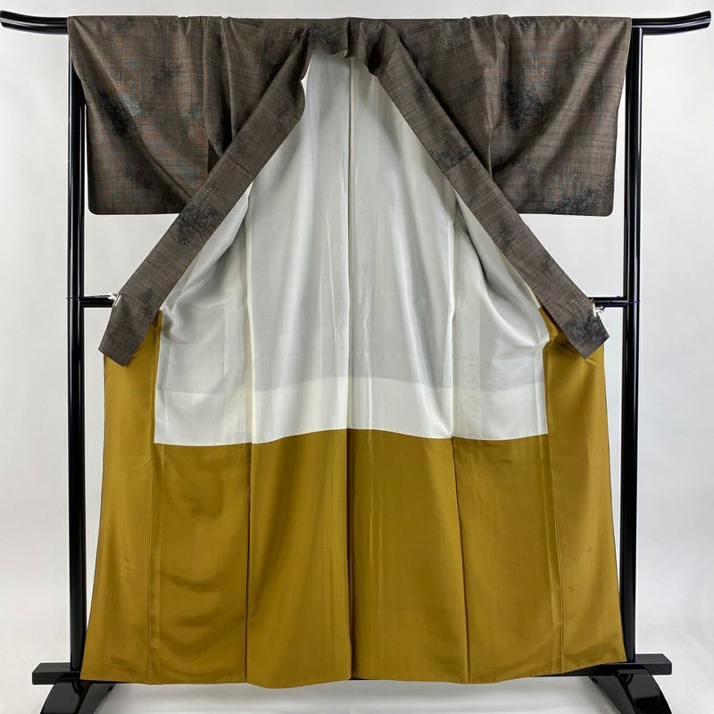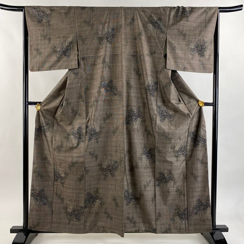 【紬】 灰色系 灰茶 秀品 A 約160cm~約169cm 裄丈65cm (M)size 袖丈47cm -3980 美品 二万以下