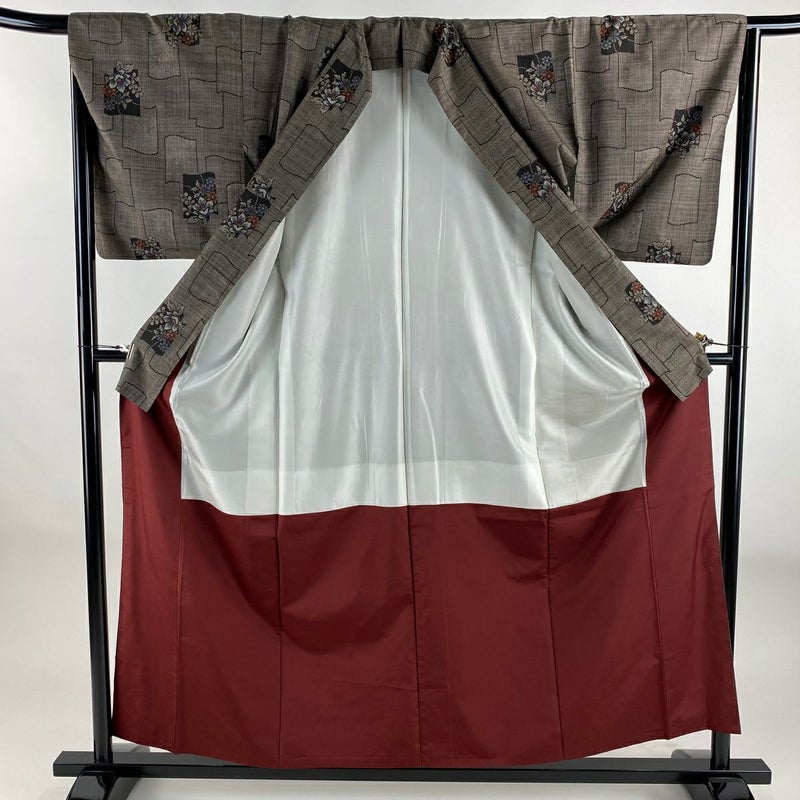 【着物ランク】秀品 【素材】正絹 【身丈】約157cm 【裄丈】約65cm 【袖丈】約49cm 【袖幅】約35cm 【前幅】約23cm 【後幅】約30cm 【サイズ】M 【着物仕立て】袷 【着用時期】10~5月 【状態ランク】ランクA 【着物着用シーン】気軽なパーティー、観劇、食事会、正月、気軽なお茶会、街着