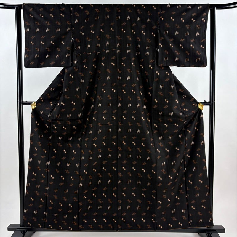 【紬】 黒系 墨色 秀品 A 約150cm~約159cm 裄丈62cm以下 (S)size 袖丈46cm以下 -3980 美品 二万以下