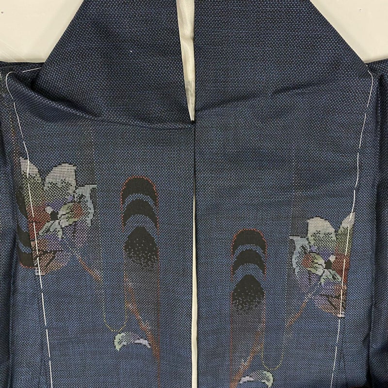 【紬】 青系 紺色 秀品 A 約160cm~約169cm 裄丈63cm-64cm (M)size 袖丈48cm 7990-9980 美品 二万以下