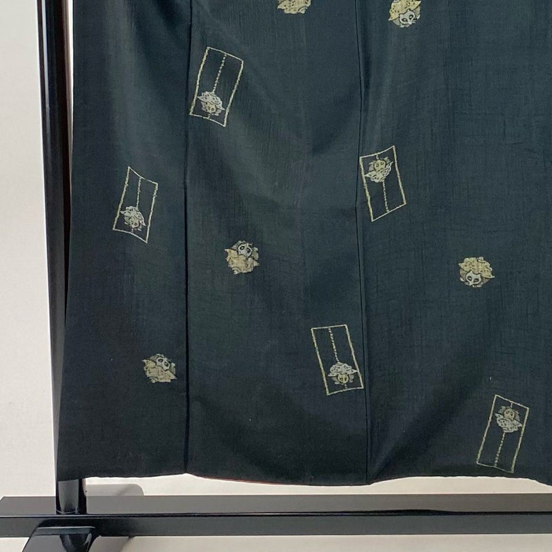 【着物ランク】秀品 【素材】正絹 【身丈】約156cm 【裄丈】約64cm 【袖丈】約45cm 【袖幅】約33cm 【前幅】約24.5cm 【後幅】約29cm 【サイズ】M 【着物仕立て】袷 【着用時期】10~5月 【状態ランク】ランクB 【着物着用シーン】気軽なパーティー、観劇、食事会、正月、気軽なお茶会、街着