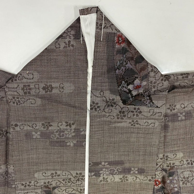 【紬】 灰色系 灰茶 秀品 A 約150cm~約159cm 裄丈63cm-64cm (M)size 袖丈46cm以下 -3980 美品 二万以下