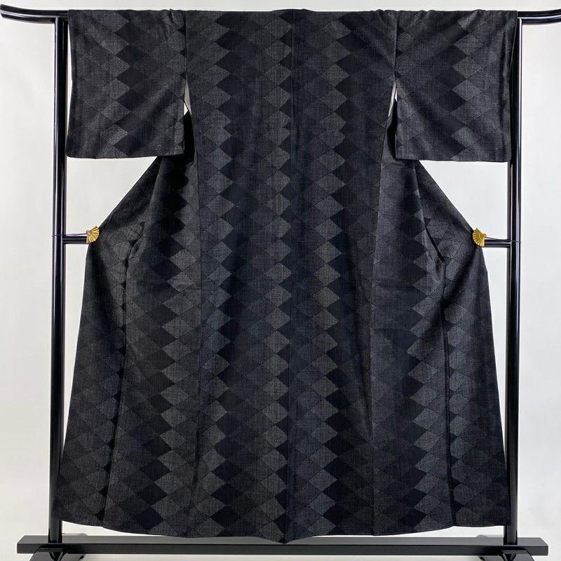 【紬】 灰色系 黒灰 秀品 C 約150cm~約159cm 裄丈65cm (M)size 袖丈46cm以下 4000-7980 二万以下