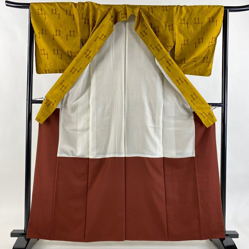 【紬】 黄色系 黄土色 秀品 B 約160cm~約169cm 裄丈63cm-64cm (S)size 袖丈48cm 4000-7980 二万以下