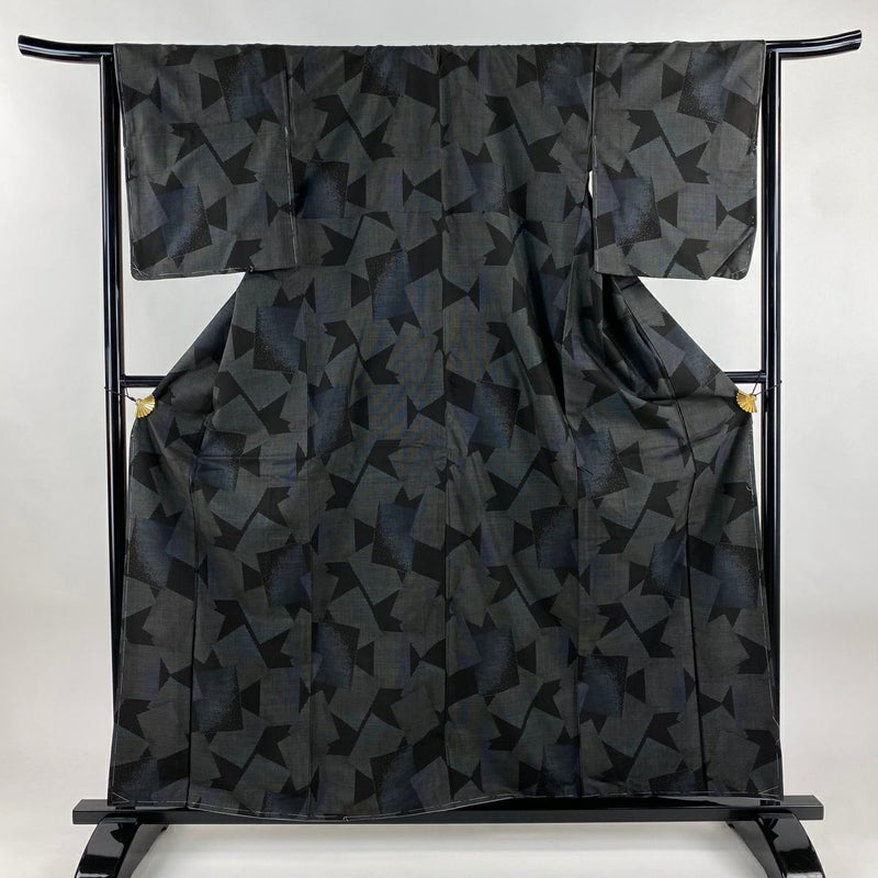 【紬】 黒系 黒 秀品 B 約160cm~約169cm 裄丈63cm-64cm (M)size 袖丈49cm 7990-9980 二万以下