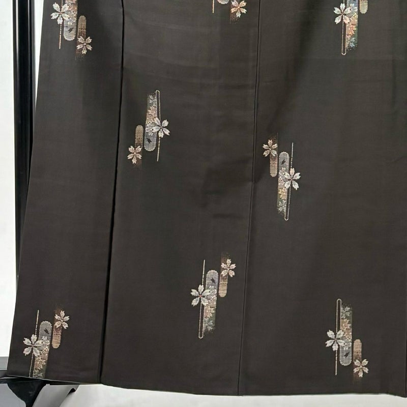 【紬】 茶系 焦茶色 秀品 C 約160cm~約169cm 裄丈67cm-68cm (L)size 袖丈49cm 4000-7980 二万以下